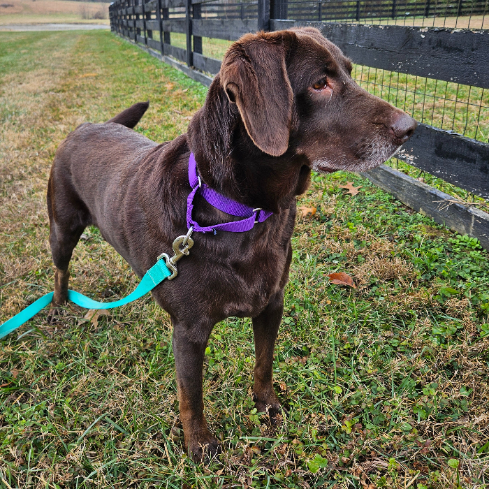 Cocoa is a lovely 4.5 year old Chocolate Lab at probabaly around 65ish lbs who has not been treated kindly by her past people and was helped to come to GRRAND by a concerned neighbor. She was literally used only for breeding, treated badly and kept in horrible conditions all by herself while trying to raise her puppies, but not anymore. Her people were planning to dump her somewhere as they were done with her, even though she was pregnant. GRRAND was told she was a difficult dog to deal with… but on the contrary! She had worked with a trainer some on leash walking, and that should be continued. She has had her last litter of puppies and is ready to move on with her new life!
