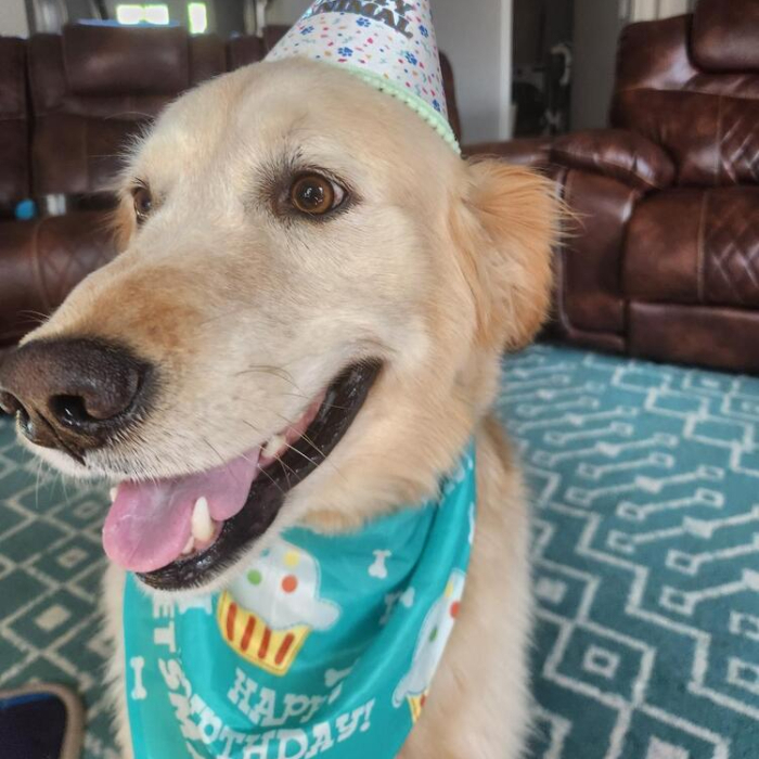 Sadly, Tyg has been at the GRRAND kennel for over a year. The kennel volunteers recently had a pool party to celebrate Tyg's one-year anniversary at the kennel – he got to swim, eat doggie cake, and of course, get dressed up!