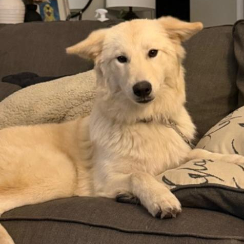 Carter is a handsome Golden/Great Pyrenees/Lab mix who came to GRRAND from a hoarding situation in September 2024. While his early life didn’t include much human love, this gentle boy is showing us more of his heart every day.