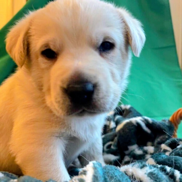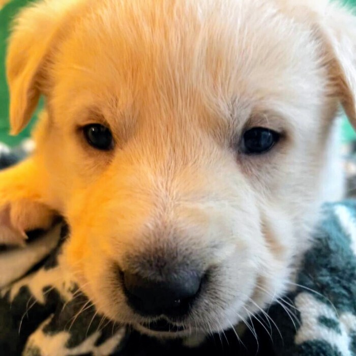 Zuma looks just like his mom, Bonnie, with that traditional English field Lab look. He’s also may be part lion! He’s very vocal, and makes sure everyone knows he is in the room. He can match his brother Uggie’s energy and is quite the talker but undeniably adorable even when he is telling you all about it. Just the same, is the sleepy boy… always snoozing!