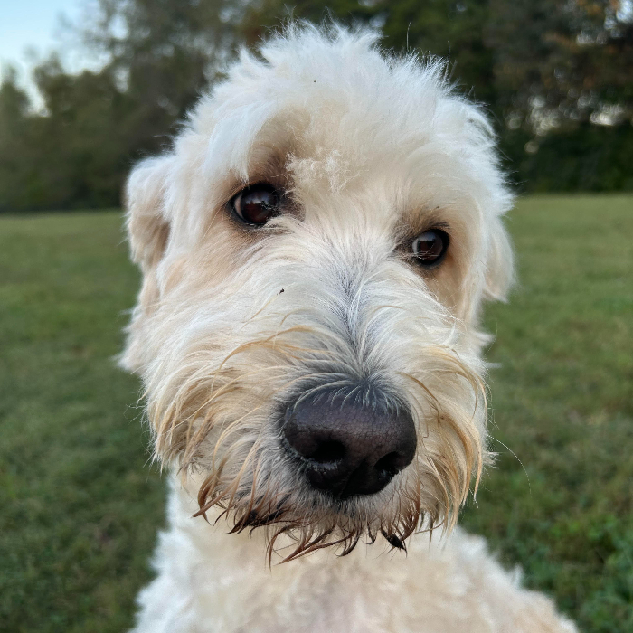Gaspy is a 3 year old, 45ish lb, female Goldendoodle who is being re-homed as her people are gone/away from the home way too much and it is causing her separation anxiety. She needs a home where someone will be home more often and has the time to give her the exercise and direction she so needs as a young active dog. As you can see in her pictures, she loves running and playing with another GRRAND rescue named Gerri! (Gaspy is on the left and Gerri is the one on the right) They have a blast and love playing with other dogs in the play yard.